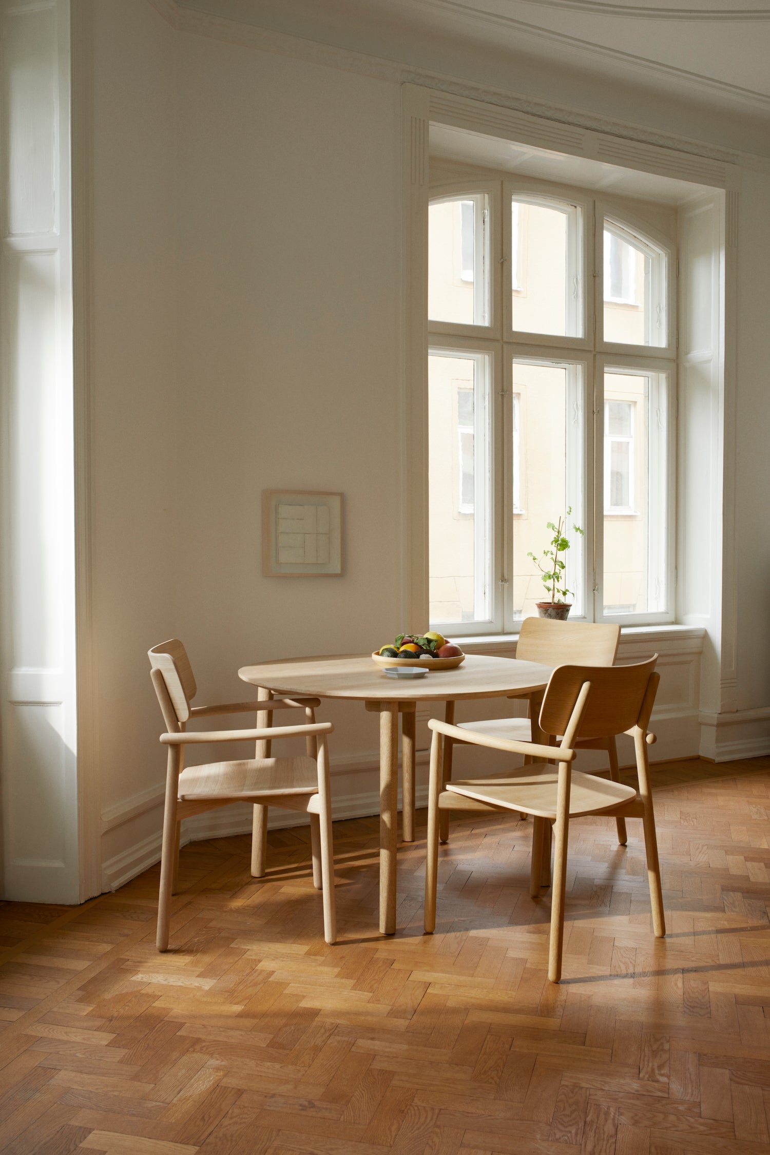 The Hven Armchair is a welcoming and comfortable seating solution designed to enrich joyful moments shared around the dining table. Exhibiting a light expression, the chair's design is accentuated by subtle details such as the intersection of the chair's poles, its round corners, and overall curved form. This chair's ergonomic design ensures comfort, making long conversations around the dining table a pleasure. Its refined aesthetics, combined with its practical purpose, make it an ideal choice for those seeking to create a warm and inviting dining space. For design professionals and architects, the Hven Armchair offers a harmonious blend of comfort and style. Its light, elegant form and thoughtful detailing are sure to enhance any dining environment, from a casual family kitchen to a formal dining room.