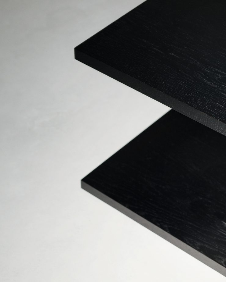 Bit Table's ingenious design marries form and function in a striking architectural composition. At its core, two robust planks of solid wood are held in perfect tension by an intermediary layer - a slender yet formidable expanse of industrially molded veneer. This triad of elements coalesces into a structure of remarkable stability and visual intrigue. The result is a versatile piece that transcends mere functionality. While serving admirably as an occasional table, it equally shines as a sophisticated plinth, providing an ideal stage for objets d'art. Whether supporting a sculptural lamp, showcasing a carefully curated vase, or elevating a prized sculpture, Bit Table stands as a testament to the elegant fusion of craftsmanship and innovative design.