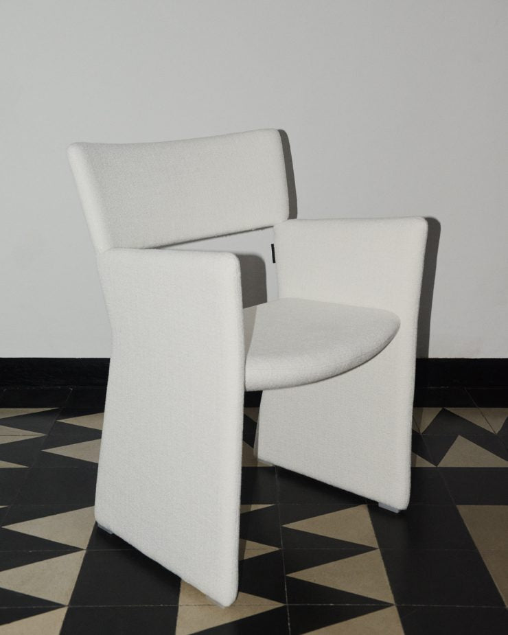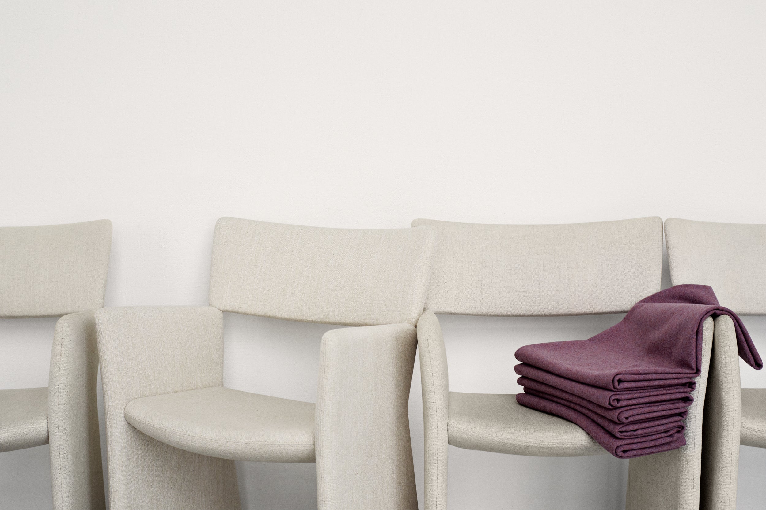 The Crown collection comprises of an armchair (with or without a writing tablet) and an easy chair. These pieces are cleverly constructed, with a playful element to them. Backrests are perched on the armrests, seemingly unsupported but in fact relying on a strong, concealed steel joint.