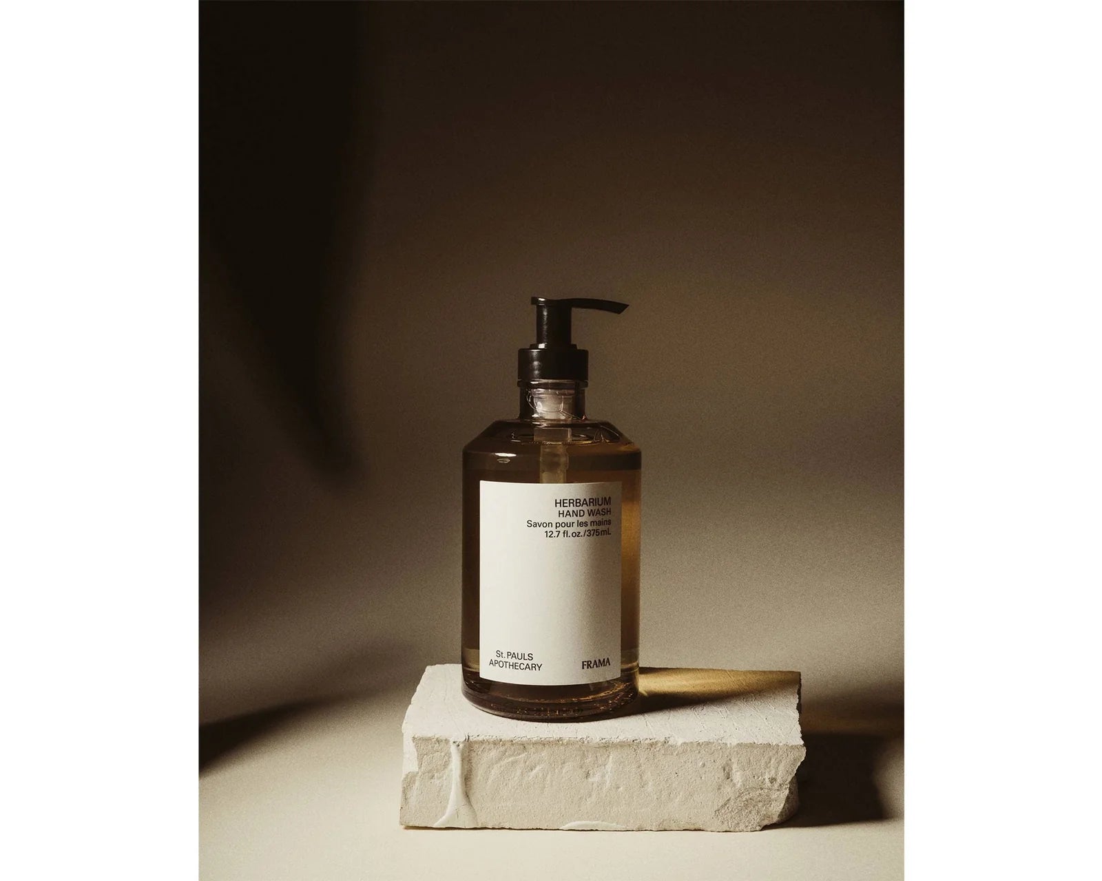 Key notes: Orange, White Rose, Cedarwood, Patchouli Aroma: Herbal, Spicy, Woody This gentle formulation contains moisturizing plant-based ingredients, leaving hands clean, soft, and supple. Herbarium’s rich woodiness and bright citrus notes bring to mind a walk through botanical gardens where the scent of flowers and wild grass is ever-present. The scent features keynotes of orange, rose, juniper, and ho wood–a tall evergreen tree with a spreading canopy made of glossy, bright green aromatic leaves native to Asia. Herbarium has been created by FRAMA in collaboration with Be My Guest, a creative studio based in Seoul, South Korea. Created with natural ingredients Gender-neutral Comes in a reusable glass bottle This product can also be purchased as a Herbarium Hand Wash Refill 500 mL > in a recyclable PET container without a pump > and also as a Herbarium Hand Wash 375 mL > This care product comes in a glass container Made in Denmark Cleansing sets the tone for healthy and balanced skin. To prevent the accumulation of pollutants on the skin that can lead to inflammation and the generation of free radicals, apply a couple of pumps to wet hands and work into a smooth lather. Rinse for clean, soft, and refreshed hands. For extra hydration, follow with the Herbarium Hand Lotion > Aqua, MIPA Laureth Sulfate, Glycerin, Cocamidopropyl Betaine, Sodium Chloride, Sodium Levulinate, Parfum, Propylene Glycol, Potassium Sorbate, PEG-120 Methyl Glucose Dioleate, Citric Acid, Sodium Benzoate, Ficus Carica Fruit Extract, Gossypium Herbaceum Seed Extract, Limonene, Linalool, Sodium Citrate, Sorbic Acid, Trisodium EDTA, Tocopherol