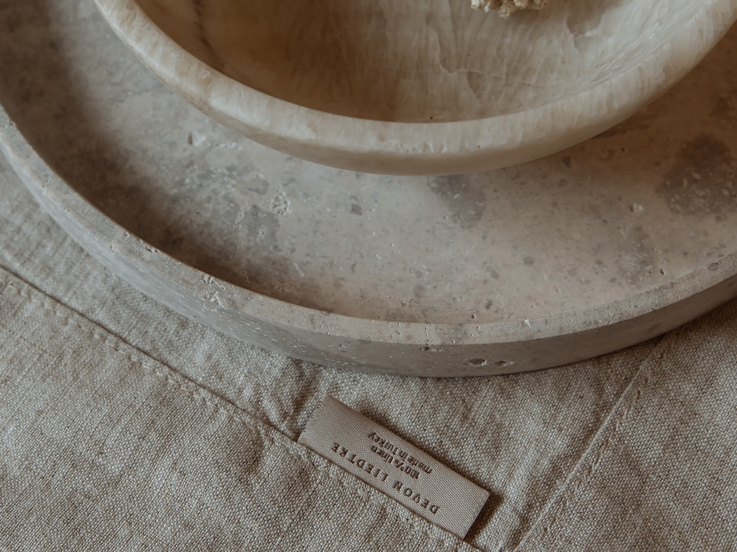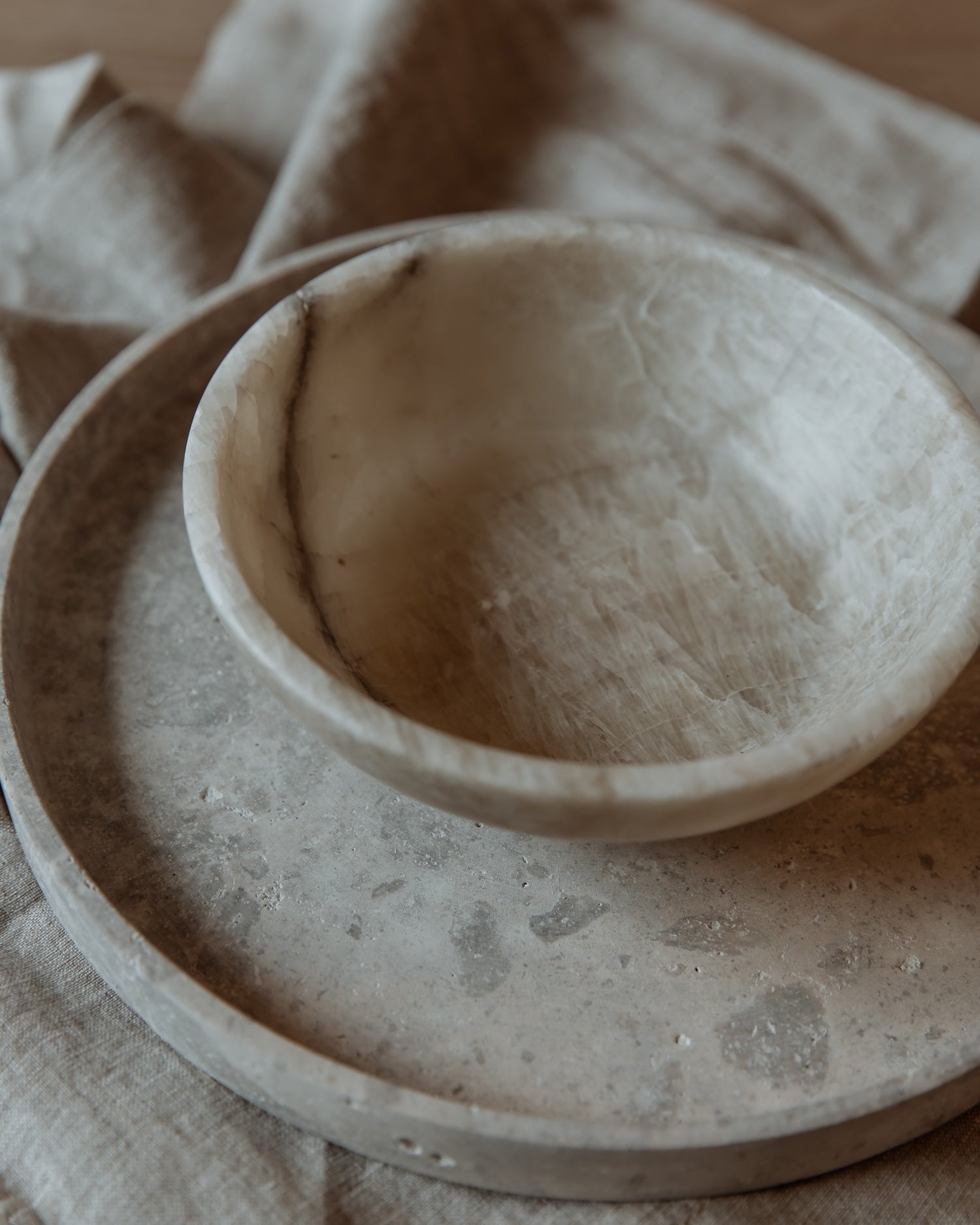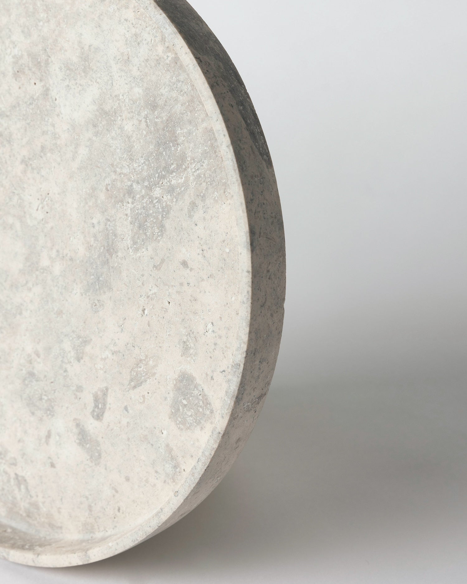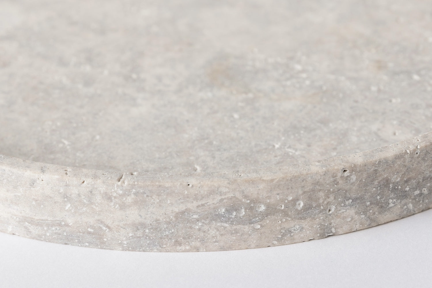 Handcrafted by European artisans, the travertine round tray serves as a versatile catch-all for various purposes. Use it to welcome guests with hors d'oeuvres, organize vanity essentials, or display collections. Each tray is unique, showcasing the natural variations of the stone.