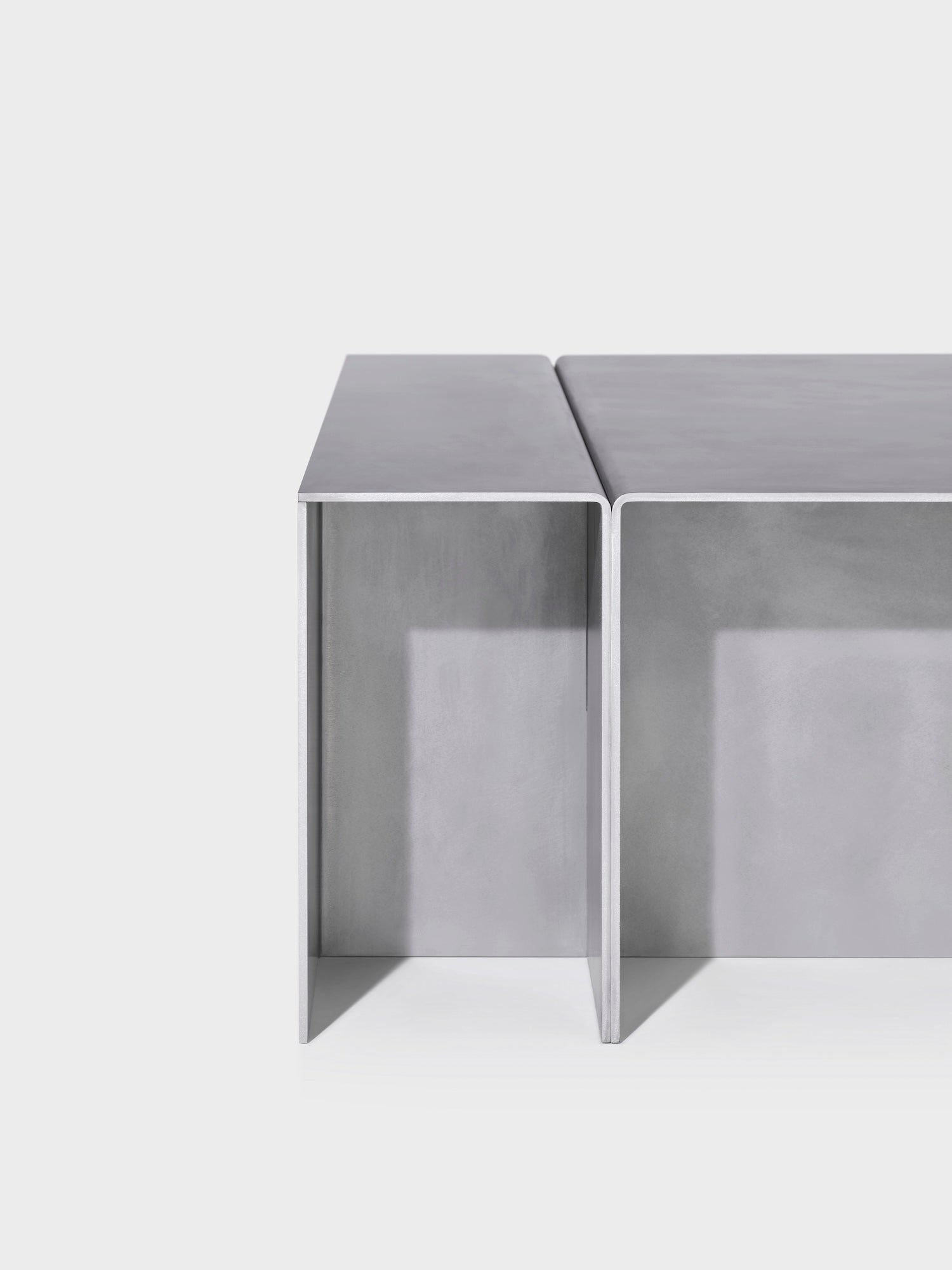 Craftsmanship meets precision as the Section Coffee Table is constructed from five folded and intersecting parts of 6mm waxed aluminum. This minimalist design, with its clean lines and solid construction, exhibits a geometric aesthetic to anchor a living space. Each table is individually signed, dated, and numbered by Eindhoven-based designer Paul Coenen.