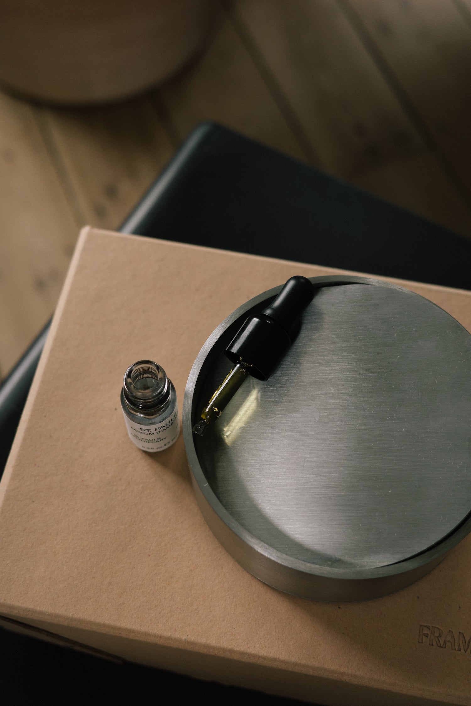 The Sphere, a striking oil diffuser, draws its unique design inspiration from Marcel Duchamp’s ‘Rotoreliefs’, a renowned series of geometric sculptures crafted between 1924 and 1936. Constructed from high-quality steel, this spherical diffuser, when warmed by a tealight, gradually disperses the essential oils held within, elevating the olfactory ambiance of any space. Both decorative and functional, the Sphere enriches the environment by creating an inviting and soothing atmosphere. Alongside the Sphere, comes the Beratan Essential Oil Dropper in a 10mL home fragrance edition.