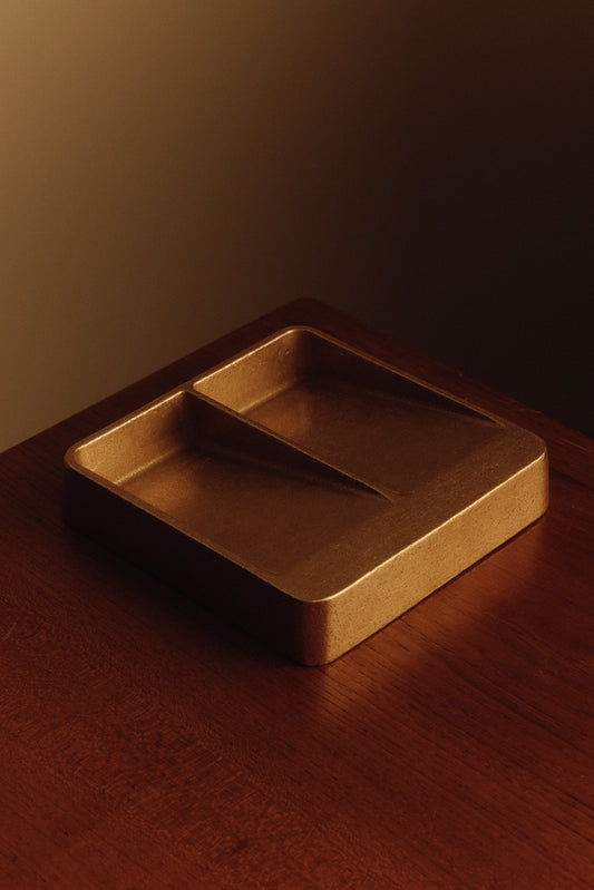 Vide Poche, French for "empty pocket," is designed with your everyday essentials in mind. Perfect for safely stowing items like keys, coins, and your phone, it provides a convenient place to discard your day at the door. Crafted, polished, and finished in Sydney, Australia, Vide Poche is made from solid aluminum, a material known for its durability and sleek aesthetic. The process of sand casting is employed, focusing equally on the form of the object and the negative space it creates. This attention to detail offers an intriguing design feature - the dish is reversible, encouraging consideration of both sides of the object.